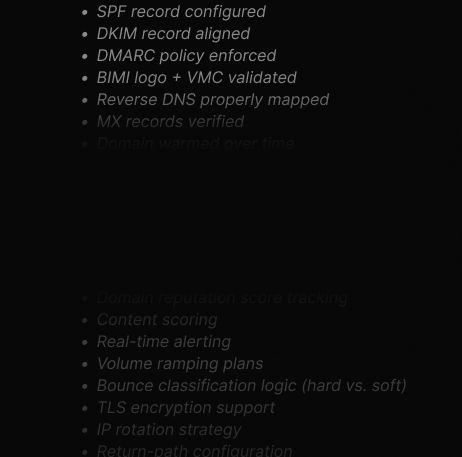 Need help with something specific? I offer expert support across domain authentication, DNS records, inbox testing, ESP setup, spam remediation, and everything else behind-the-scenes.